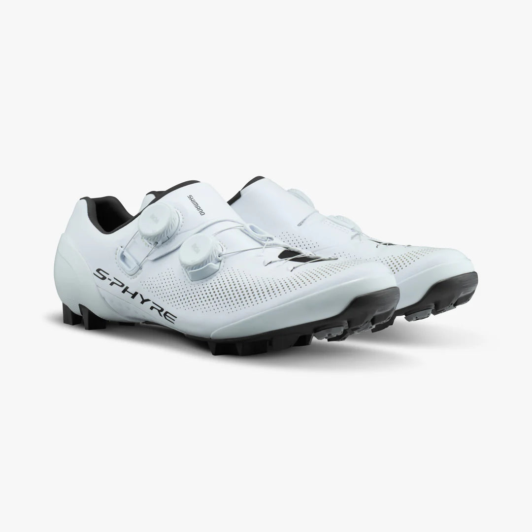 SH-XC903 NEW S-PHYRE RACING SHOES THRIVE IN TOUGH CONDITIONS THANKS TO THEIR REFINED, PRO-GUIDED DESIGN. FEATURES Lightweight BMX, cross country and cyclo-cross race-tuned upper offers breathable comfort in severe weather and terrain. Heel cup with anti-twist stabilization secures optimal foot positioning for intense acceleration and high tempo cadences. Dual low-profile BOA® Li2 dial allows precise micro-adjustment, plus the shielded bottom dial is protected against accidental releases from impacts. Sleek, low-profile crossover lacing pattern elegantly secures the forefoot. Lightweight SHIMANO ULTREAD XC rubber outsole with a highly technical tread pattern provides exceptional racing grip. With the included talon-shaped spikes, riders can choose lightweight performance or...
